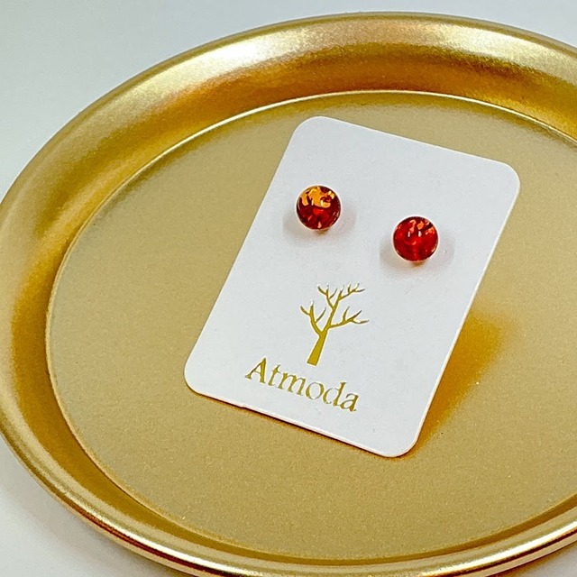 【LaLack】リトアニア産天然琥珀 ピアス「ボール(チェリーアンバー)」