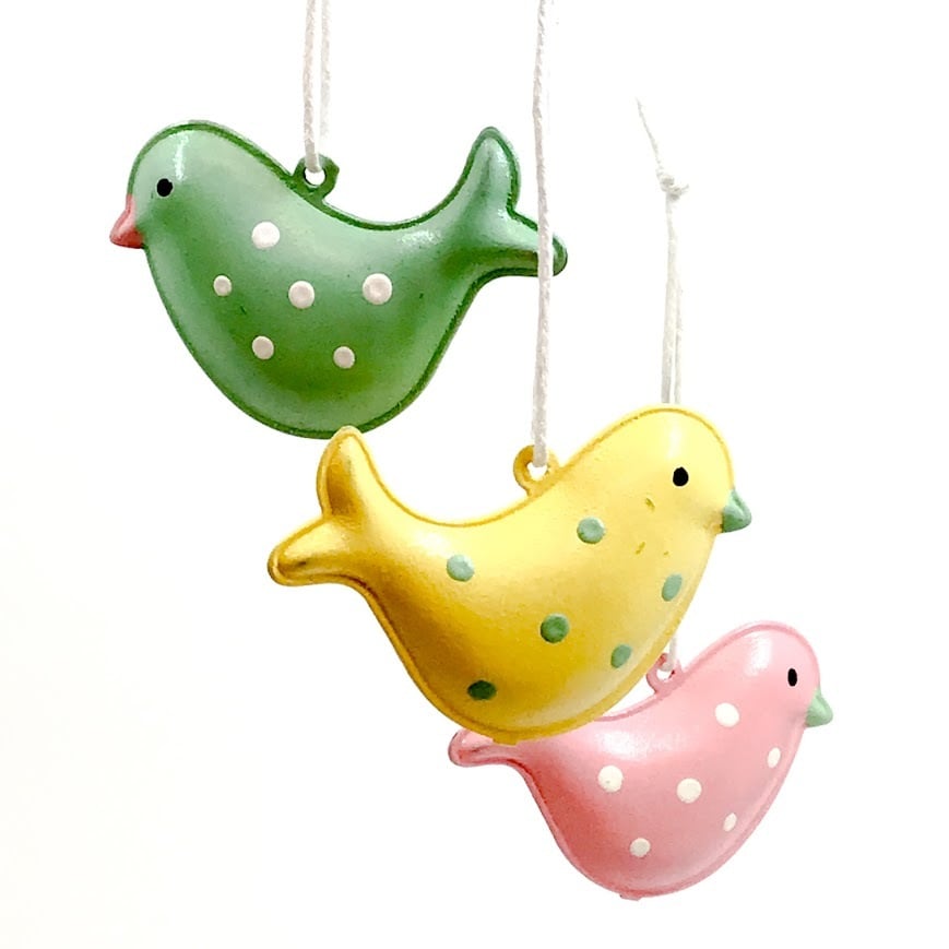 春らしい三色の小鳥がセットになったオーナメントです。