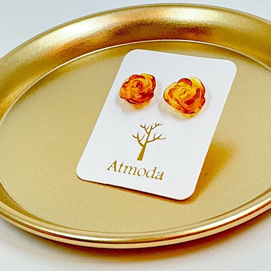 【LaLack】リトアニア産天然琥珀 ピアス「バラ(チェリーアンバー)」