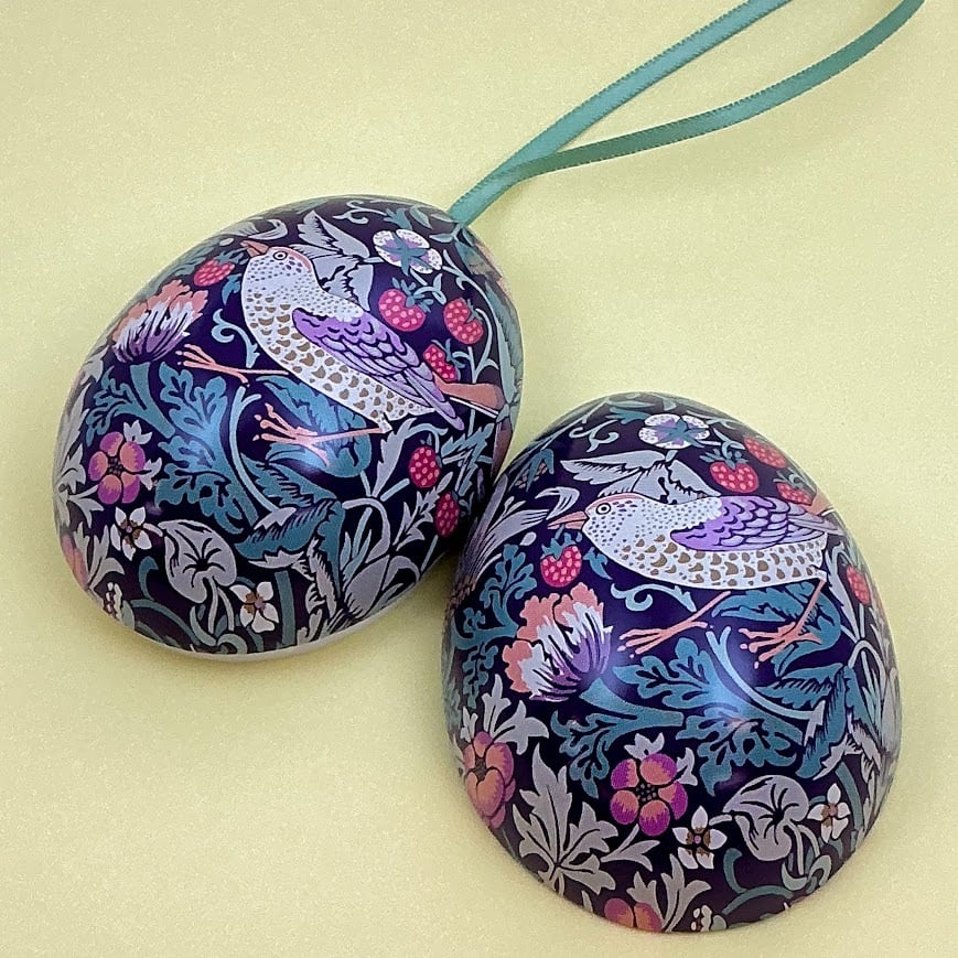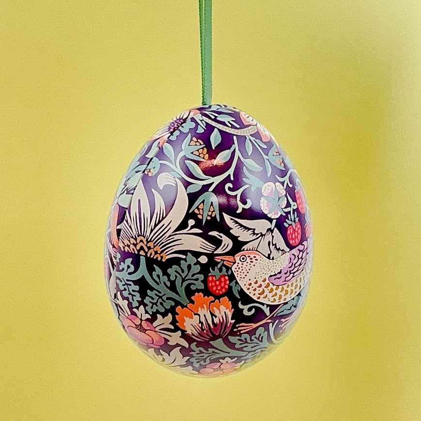 ウィリアム・モリスの描くデザインが描かれた、スチール製のエッグオーナメントです。