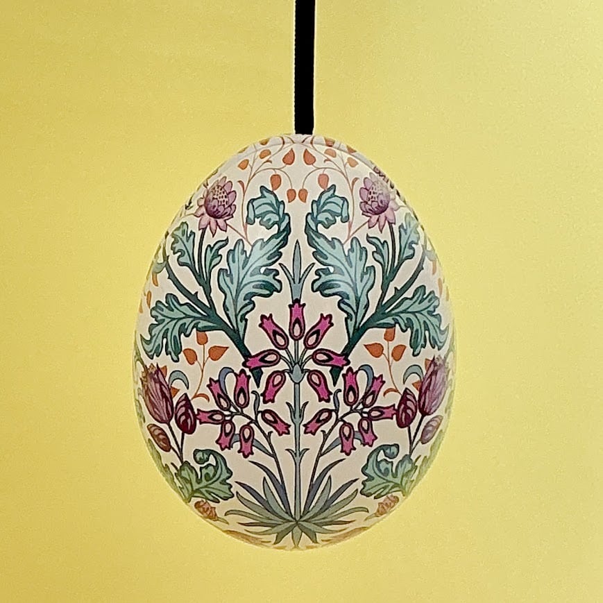 ウィリアム・モリスの描くデザインが描かれた、スチール製のエッグオーナメントです。