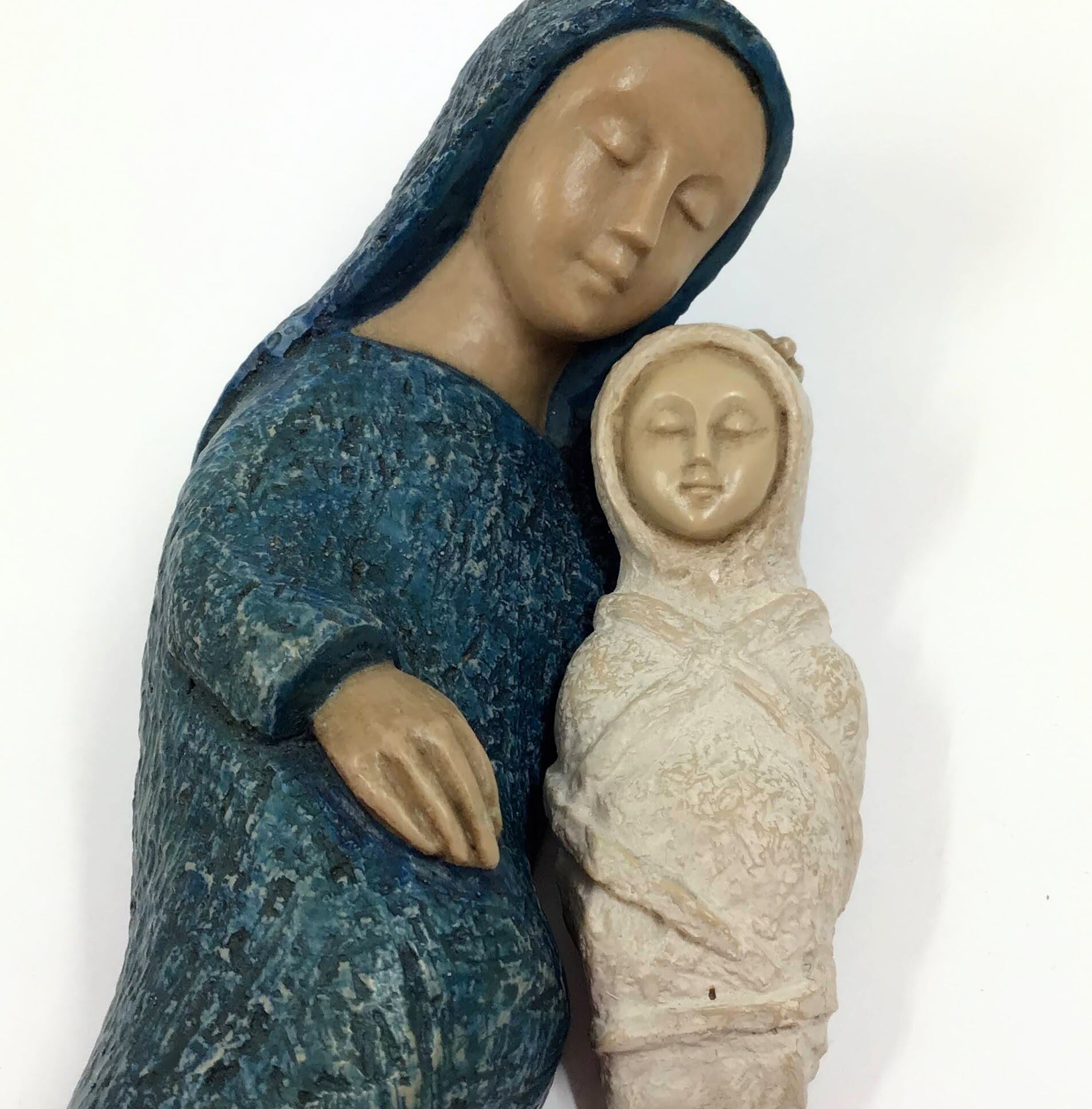 ピレネー山脈で採れるドロミー堆積岩を潰し粉状にしたものに樹脂を混ぜ、型に流し固めて作られます。ドロミー堆積岩の地色のせいで像の肌の色が小麦色であるため、オリエンタルで柔和な雰囲気を醸し出しているところもドロミー像の特徴です。
