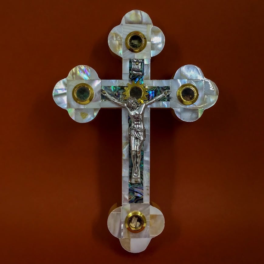 表面は貝で象嵌されており、とても美しい十字架です