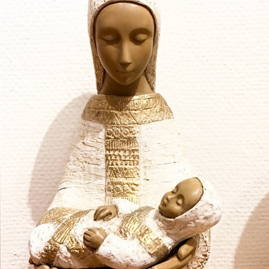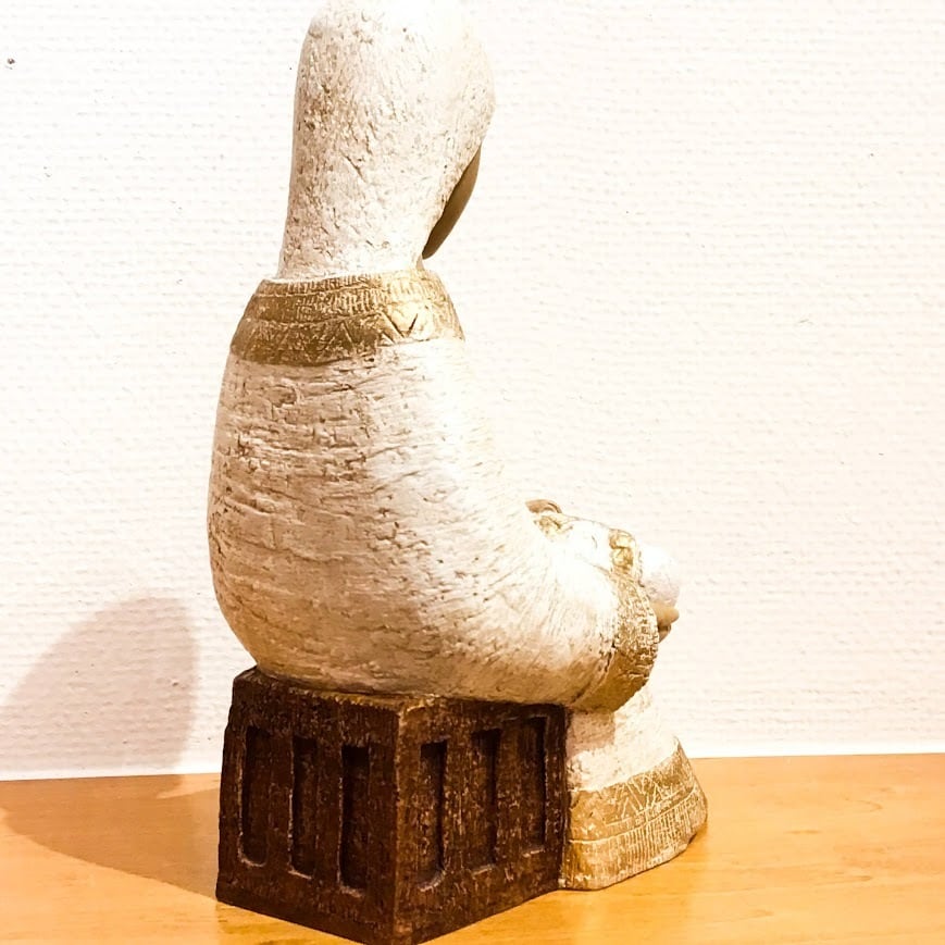 ピレネー山脈で採れるドロミー堆積岩を潰し粉状にしたものに樹脂を混ぜ、型に流し固めて作られます。ドロミー堆積岩の地色のせいで像の肌の色が小麦色であるため、オリエンタルで柔和な雰囲気を醸し出しているところもドロミー像の特徴です。